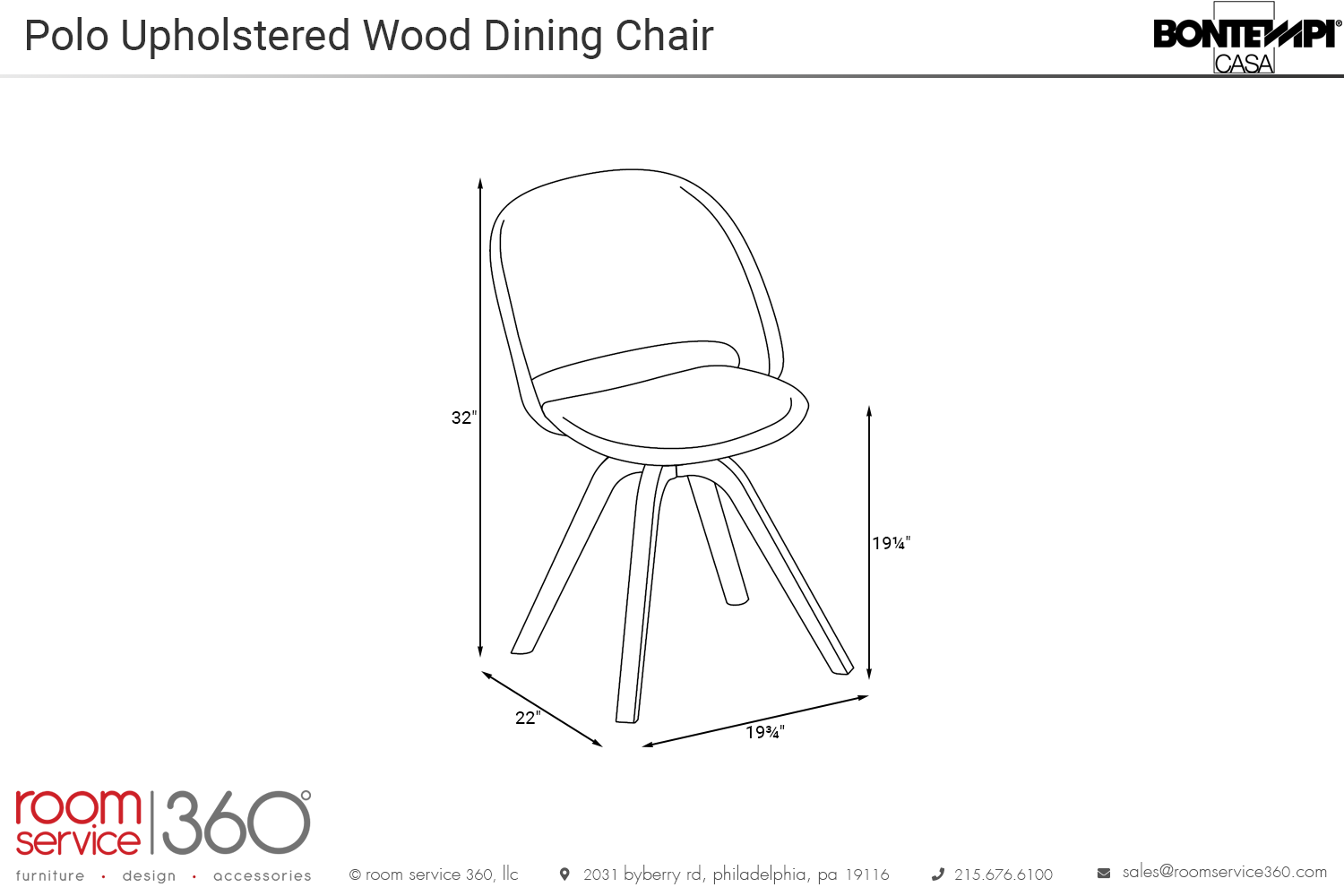 The Polo upholstered wood dining chair by Bontempi Casa simultaneously brings comfort and style to your modern dining area. The unique silhouette features angled wooden legs, a rounded seat, and a curved back with an opening at the bottom. Because of this design, this chair offers ergonomic and lumbar support during meals and social gatherings. The soft upholstery and cushioned lining offer comfort for convenience.